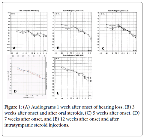 - Anyah A, Mistry D, Kevern E, Markiewicz K (2017) Idiopathic sudden sensorineural hearing loss: Average time elapsed before presentation to the otolaryngologist and effectiveness of oral and/or intratympanic steroids in late presentations. Cureus 9: e1945.