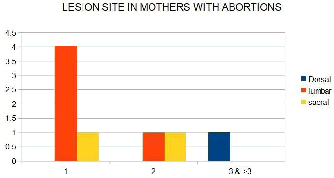 Age of Mother at Conceiving of the first child â?? the youngest was 16 yr old and 26 being the oldest mother. The average range of age of conceiving the affected child was 19-22 years. Abortions of Mother in Previous Pregnancies were noted in 8 mothers. 2 mothers had bad obstetric history [Table 21] [Chart 2].