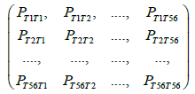 Temperature data can belong to discrete continuous bands which are exhaustive and mutually exclusive. A temperature at any time can belong to only one band which can be regarded as a state since it is exhaustive and non-overlapping. In the 1st order Markov Chain process the relating probabilities of transitioning from state to state can be represented in a transition probability matrix. We had identified 56 distinct states represented by the equation (7):