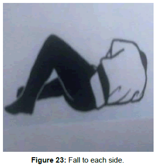 The traditional falling position includes (1) lying on one side, (2) pulling up the legs while bending at the waist and knees, (3) keeping the two fists behind the head, (4) tucking the chin, and keeping the eyes on the stomach, and (5) keeping the knees and ankles slightly aside each other (Figure 7).