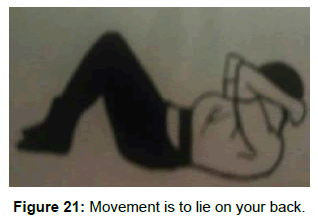 The final movement is to lie on your back, roll onto your shoulders while raising up your legs straight and high in the air, and then fall to each side (Figures 21-23).