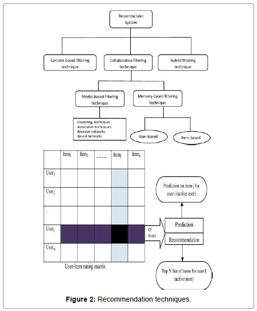 In this method the system remembers the previous history of user and according to the behavior of other user that is similar behavior of the user recommend the product. Let’s consider an example to understand better. Consider three user A, B and C similarly. The user a buy tea, milk and bread. The user B buy Tea, bread. If the user C buy tea than the system automatically recommends with high priority bread and a low priority of milk. The system also recommend milk to user B. that’s technique is known as collaborative filtering method Figure 2. Collaborative filtering process. Memory based techniques; Model-based techniques; Hybrid filtering Hybrid filtering method is the combination of two or more filtering method. That is when two or more filtering or recommendation techniques combine together to form a new recommendation technique that reduces disqualify of individual recommendation technique and improve the result than the new technique is known as hybrid filtering technique. The various hybrid technique is given below. Weighted hybridization; Switching hybridization; Cascade hybridization; Mixed hybridization; Feature-combination; Featureaugmentation; Meta-level.