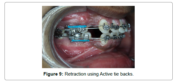 Patient was recalled after 10 days for suture removal. He was referred back to the Department of Orthodontics after suture removal for the placement of the arch wire. Retraction was started on the same visit using active tie back method (Figure 9).
