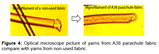 Table 1: Mechanical properties loss of parachute fabric compare with non-used fabric.