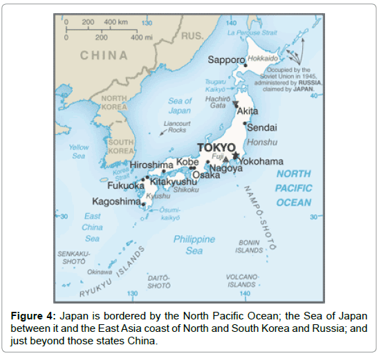 Japan is bordered by the North Pacific Ocean; the Sea of Japan between it and the East Asia coast of North and South Korea and Russia; and just beyond those states China (Figure 4). Japan’s economy has been mired, for at least ten years, in an economic slump -- nothing the Japanese central bank tries seems to stimulate economic growth. Part of the problem is that Japan has an aging population. It is so bad Japan had a negative population growth rate in 2016 – either more people are dying than are being born or more people are leaving Japan than are moving to Japan or both if this population loss is true (Table 2).