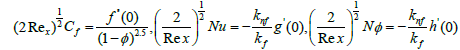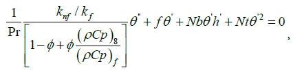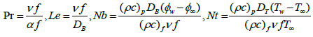 where the governing parameters Pr, Le, Nb and Nt are defined as follows,