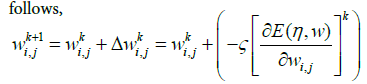 where ζ, k and E(η,w) are the learning parameter, iteration step and the error function, respectively. This parameters are using to update the network weights (Figure 2).