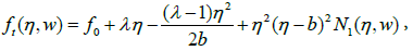 Trial solutions of the equations (9) up to (11) with the input parameter η and unknown weight parameter
