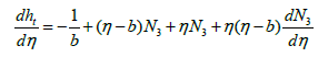 As seen from the equations (30), this function is involve to function N (η, w) and derivatives of this function. Therefore, we need to obtain the derivative of this function with respect to the inputs parameters η as follows,