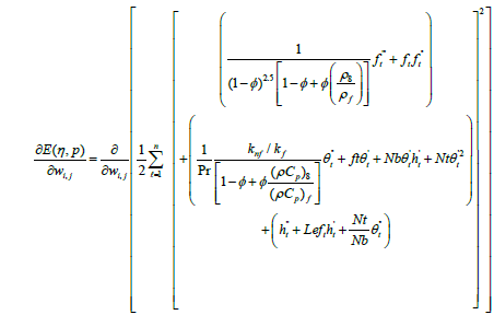 where Ψi is the function which presents the structure of the boundary value equations. The parameters yi and ∇ are showing the solution and differential operators, respectively. If yi,t(η, w) are defined the trial solutions, then the equation (24) can be rewrite as,