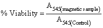 | Here, I373 (Control) is the absorption regarding supernatant of control samples at 373 nm [39,40], Itest is the supernatant absorption of cells which contain magnetic nanoparticles after addition of acetic acid. | |