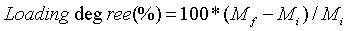 | where Mf=final textile weight after loading (g); Mi=weight of initial textile. | |
