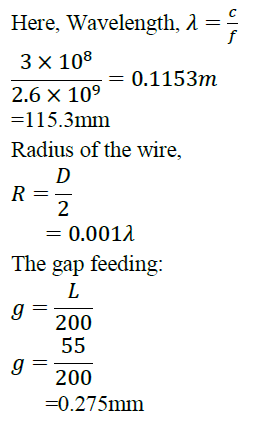 There is a gap between two halved wave dipole antenna arms for feeding purposes. Here, the length, thickness and feeding gap of the antenna is denoted by L, D and g. The radiation resistance of the halfwave dipole is 73 Ohm and it matched with the line impedance [9]. The main purpose of this paper is to design and simulate a half-wave dipole antenna by using CST simulator and to operate at 2.6GHz with high gain in LTE (4G) applications.