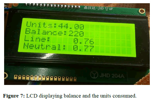 The project was demonstrated by considering that one unit is equivalent to rupees 5. The meter was recharged with a certain amount and when the balance exhausted the message appeared and electricity supplied to the consumer is switched off. For the verification, two bulbs of 100 watt and 15 watt were used. When 15 watt bulb is being used, the time taken for the complete exhaustion of the units approximately equivalent to 6-7 times the time taken by 100 watt bulb for complete exhaustion [12].
