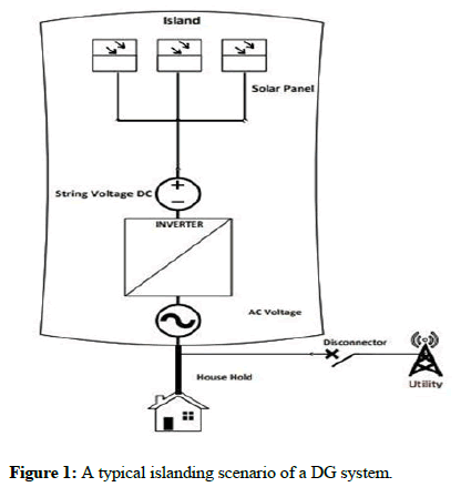 Today, a considerable portion of distributed generation source are classified as renewable source including photo voltaic arrays system, mini hydro power plants, and wind energy conversion systems. The reason why renewable energy based distributed generation systems have become popular in recent years is because they improve the energy security of an area since renewable energy is locally available. However, there may be number of operational difficulties associated with connecting DG systems to the electricity grid. Islanding detection is one such challenges. Argue that islanding occurs when a DG system loses contact with the rest of the power grid (140). Due to the potentially terrible consequences of islanding, DG interconnection standards like IEEE 1547 require the use of a reliable and rapid islanding detection method [2]. Passive monitoring has mainly been used in the monitoring of energy frequency and voltage in conventional islanding techniques (Figure 1).