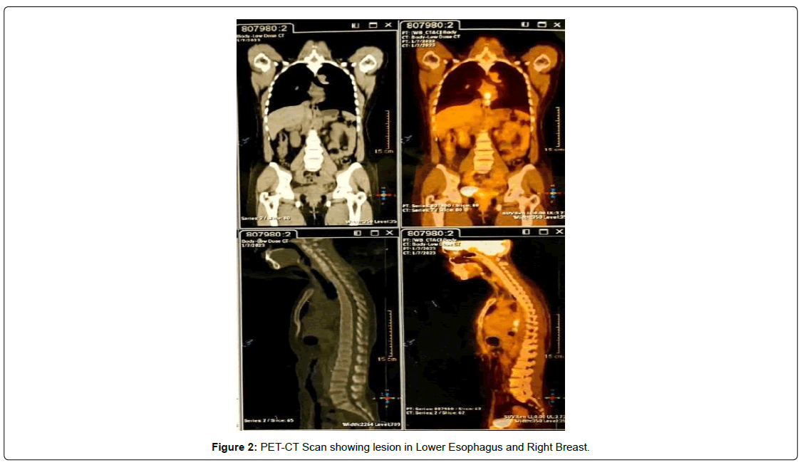Citation: Naseer N, Khurshid F, Khan Y, Taj R & Qayyum A (2024) Dual Primary Malignancies Breast Cancer and Esophageal Cancer: A Case Report. J Regen Med; 13:2.