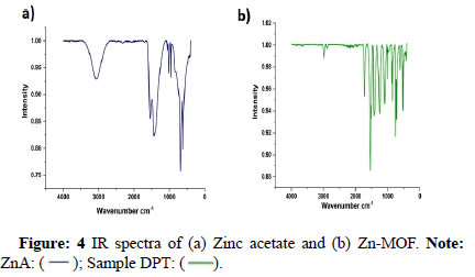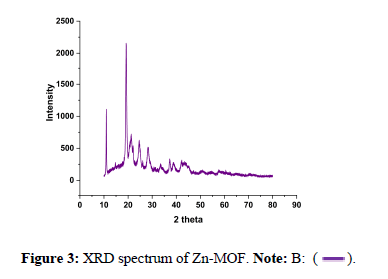 The reduction in peak around 3000 cm-1 indicates the formation of link between zinc and benzene di-carboxylic acid. The absence of extra peak claims the purity of the substance and also the complete conversion of zinc acetate.