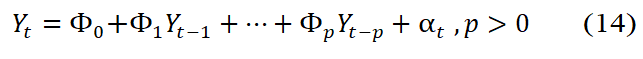 Where, Yt is a vector of the dependent variable Ф0 is a kdimensional vector and αt is a sequence of serially uncorrelated random vectors with mean zero and covariance matrix Σ. Covariance matrix Σ must be positive definite; otherwise, the dimension of Yt can be reduced. The error term, αt is a multivariate normal and Фj are k × k matrices. Using the back-shift operator B, the VAR(p) model can be written as:
