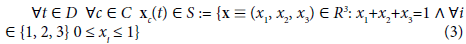 Definition 5: A point xc(t) ≡ (x1c(t), x2c(t), x3c(t)) ∈ S is close to the vertex vi if and only if xic(t) > 0.5, where i ∈ {1,2,3}, c ∈ C, and t ∈ D.