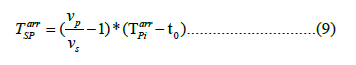 The calculated arrival time eq at station i can be written as follows: