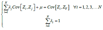 To minimize the variance of kriging we use the Lagrangian [35]: