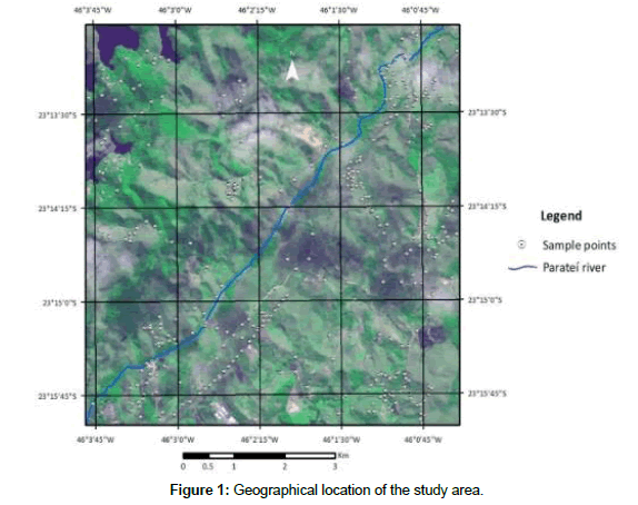 As a case study, the above methodology was applied to a geographic region located in a Brazilian Southeast geographical region, known as Jacarei, state of Sao Paulo. The studied region has the following geographical bounding box: w 46o 4’ 4.98’’ to w 46o 0’ 2.82’’ and s 23o 16’ 2.91’’ to s 23o 12’ 47.23’’. Figure 1 shows the geographical location of the region considered in this case study.