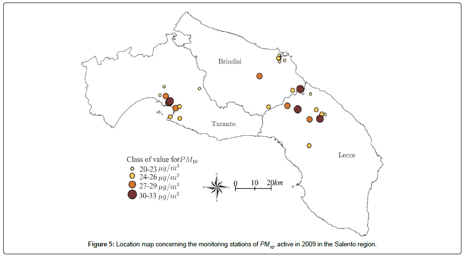 a) stations of “Traffic” type and b) a number of exceeding days at least equal to 10 (during the year 2009), have been illustrated.