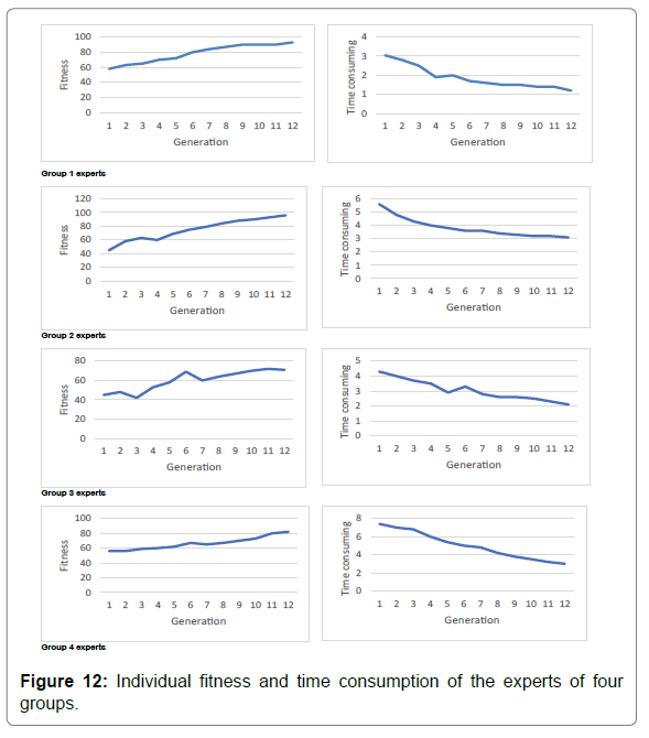 In addition, as shown in Figure 12, the time consumed for evaluation gradually decreases in each generation. With an increase in the number of generations, the evaluation time taken by all the expert groups had a decreasing trend. The difference of the expert groups in terms of age definitely had significant impact on their selection and preference characteristics. The system proposed in this study is based on the IICA approach in the field of fashion design. It allows the user to evaluate individuals, and there is a possibility of user fatigue. Therefore, a fitness function is formed with ANN to evaluate individuals beside the user in the proposed system [24-26].