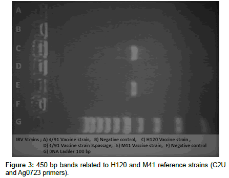 Bochkov et al. [17] found IBV positivity using by RT nested PCR. This study is related to etiology of IBV in Russia. In the study, they amplify conserved regions in 3’UTR. They found that previously known strains of IBV have similarity rate of 47 -75 % with new variant isolates in Russia and similarity among variant strains are 65 – 99 %.