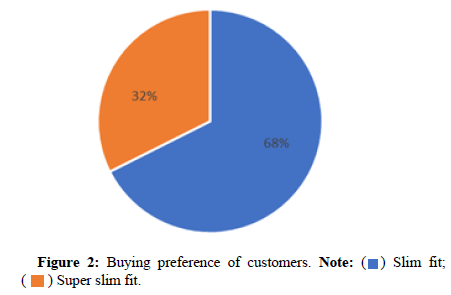 From the 40 feedback collected, 68% of the respondents bought slim fit and 32% bought super slim or skinny fit of jeans sold by the brand (Figure 2).