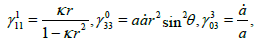 The Christoffel symbols of FRW model are given by