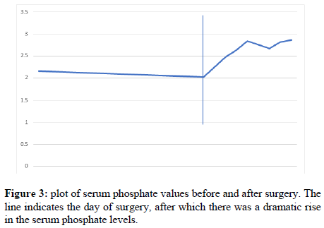 After the procedure, reversal of anaesthesia was swift and seamless. The patient was observed post operatively for 48 hours in the High Dependency Post-Operative unit (HDU), and then shifted to the ward. Her phosphate levels miraculously improved to normal in 4 days after surgery indirectly indicating a successful excision of the offending lesion (Figure 3). A post-operative CT scan was done to confirm no complications of the procedure had occurred such as hematomas or pneumocephalus [19].