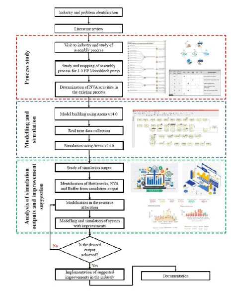 This work was carried out at GR Motors and Pumps, a small-scale industry producing household and industrial pumps in Coimbatore. Figure 1 illustrates the sequence of sections in the industry and a snapshot of an assembly section is shown in Figure 2.