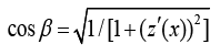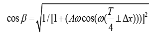 In the formula z(x) = Asin(ωx), we can get z(x)’ = Aωcos(ωx) and x = (T/4) ± Δx, so β can be got by the following formula: