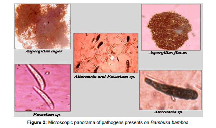 In the present study predominant fungal species identified through wet blotter method were Alterneria spp, Fusarium spp, Aspergilusflavus and Aspergilusniger (Figures 1 and 2). Namdeo et al. [6] and Mohanan [7] reported the presence of storage fungi in B. bambos, and their potential to pose problems in nursery [12]. The infection noticed was 39% and the affected seed lot registered germination of 62% (Table 1). The reduced germination due to Aspergillus, Alternaria, Rhizoctonia, Fusarium, Phoma and Chaetomium in soybean seeds was reported by Ramamoorthy and Karivaratharaju [13] and in groundnut by Ibiam et al. [14] and four indigenous tree species by other researchers.