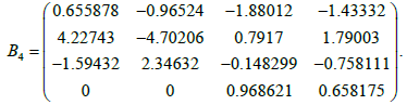 Where B4 is an unknown matrix of size 4×4. The matrix elements, after performing the necessary matrix transformations, are determined from the system of linear equations of the order of 16: