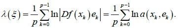 be a p-periodic pseudo-trajectory; then the Lyapunov exponent of ξ is the arithmetic mean over the period