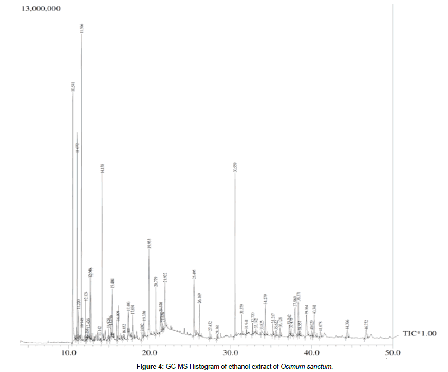 Table 4: GC-MS analysis of ethanol extract of Ocimum sanctum.
