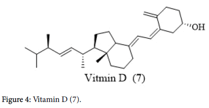 Vitamin D: Vitamin D (7) deficiency is linked to Hashimoto’s thyroiditis and more than 90% of patients studied exhibited deficiency in vitamin D (7) levels. Nonetheless, it is not established whether the lower vitamin D (7) levels were direct cause to develop Hashimoto’s thyroiditis or the result of the disease process itself [17]. Fatty fish, milk, dairy, eggs, and mushrooms are essential dietary sources of vitamin D (7). Sunlight is an important source for the biosynthesis of vitamin D (7), but the amount of vitamin formation depends on the seasons and latitude. However, patients with low vitamin D (7) levels require with the supplementation of Vitamin D (Figure 4) (7).